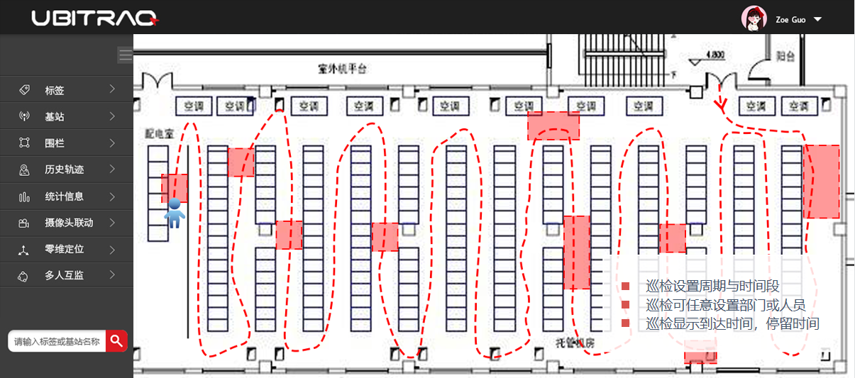 數據機房是各種數據存放處理的中心,現在的大數據時代更是離不開數據機房,數據機房的安全關系到各個領域的安全和人民生活的正常穩定的運行。通過對數據機房巡檢人員的定位可以保證巡檢人員工作履行到位,對歷史巡檢做到追溯,加強數據中心管理。