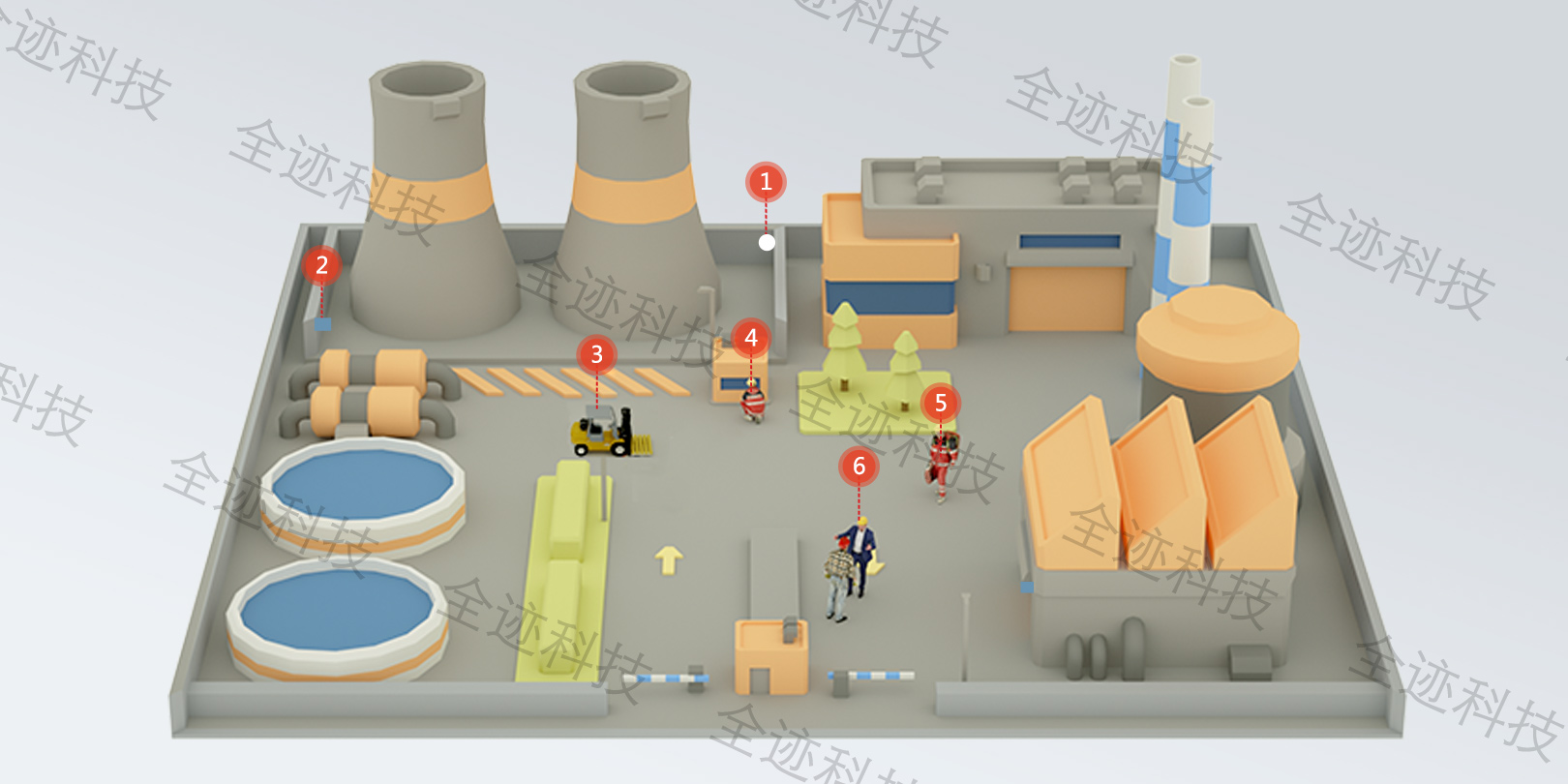 巡檢人員或外來訪客軌跡監察,位置移動可視化,支持路線預先設定,未按規定路線行走則提示告警,避免訪客誤入危險區域。